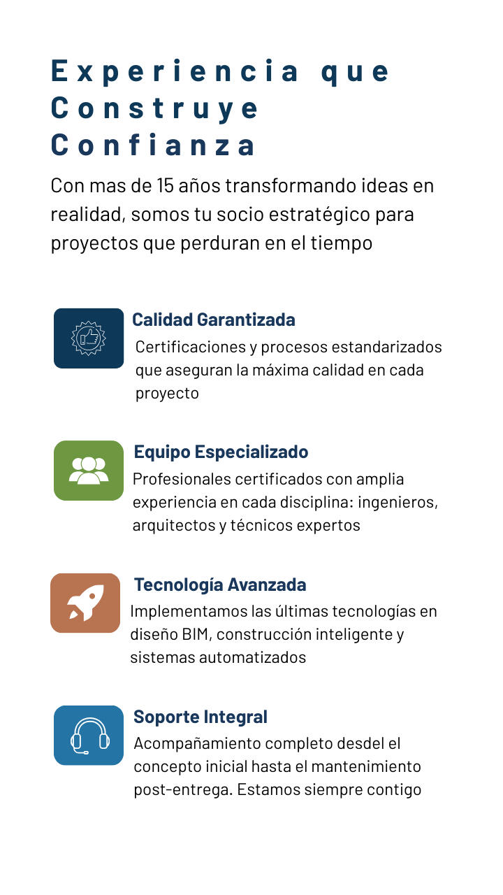 "Creamos espacios sostenibles e innovadores que mejoran la calidad de vida, combinando excelencia, seguridad y ética para generar un impacto positivo en personas, comunidades y el planeta"
